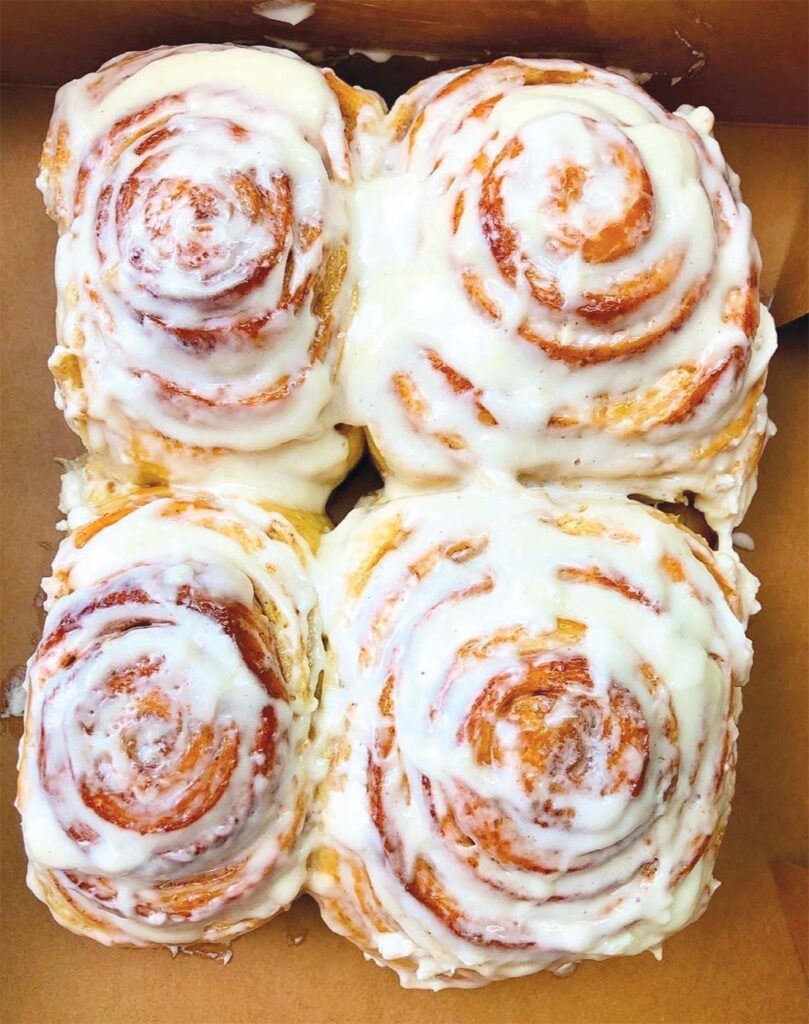 After three years of roadside hustle, Mav’s officially opened its first brick-and-mortar shop in December 2023. Today, Nikki estimates they’ve made close to 500,000 buns. (Yes, really!) “Seeing how our community has rallied around us is really amazing,” Nikki beams. Their cinnamon craft ed line-up currently features monthly flavors (57 and counting), including fan favorites like Jersey Corn, Ube, and Apple Cider.